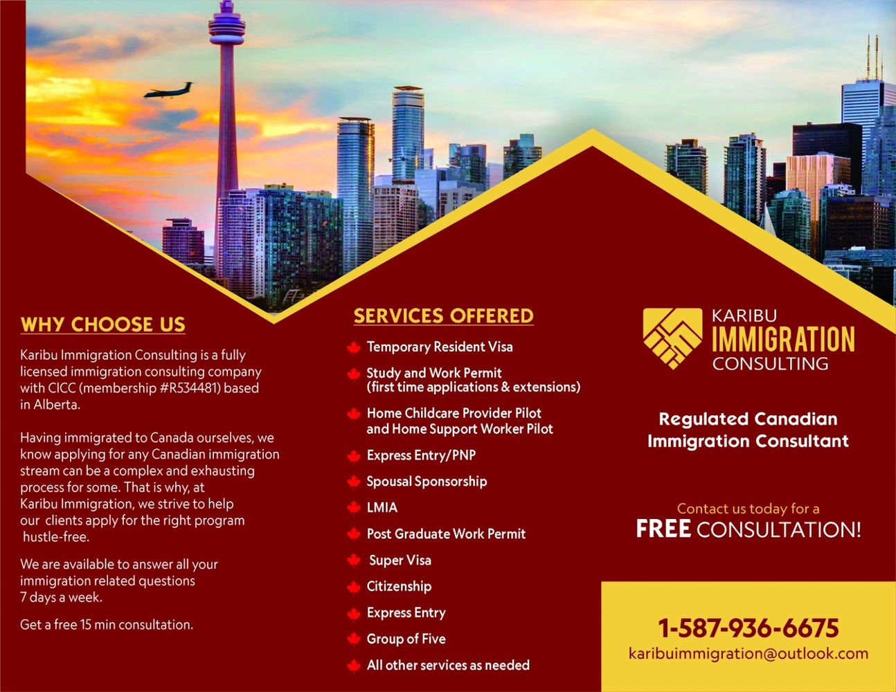 At Karibu Immigration Consulting, we strive to provide expert guidance for individuals seeking to navigate the immigration process in Canada. Located in Edmonton, Alberta, our mission is to make your journey as seamless as possible.